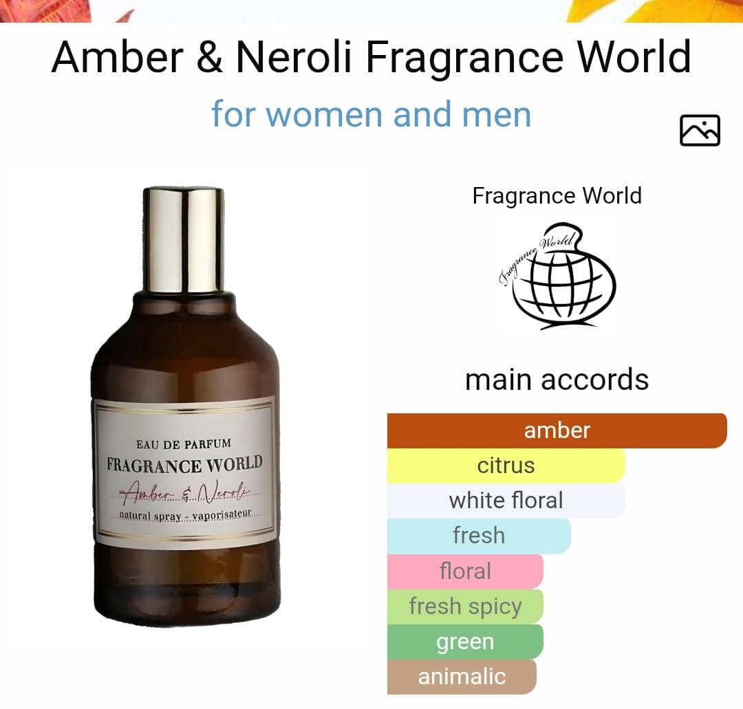 Amber & Neroli Perfume by Fragrance World is a Citrus Aromatic fragrance for women and men.
