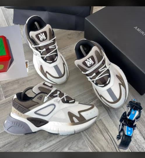 Key features include a multi-layered construction with intricate paneling, accentuated by AMIRI’s signature branding. The shoe’s exaggerated midsole not only enhances its visual appeal but also provides exceptional cushioning and support, making it perfect for all-day wear. A durable rubber outsole ensures traction and stability on various surfaces, while the padded collar and tongue deliver a snug, comfortable fit.