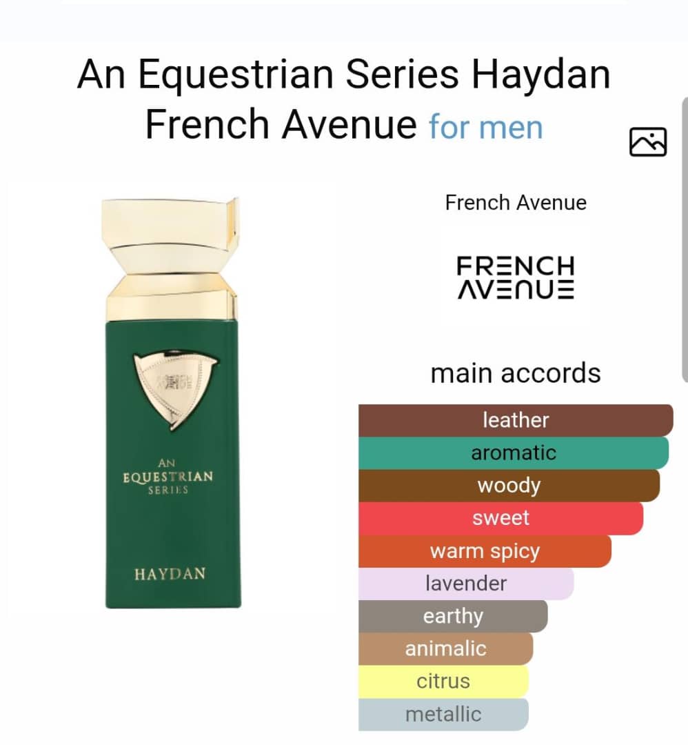 An Equestrian Series Haydan Perfume by French Avenue is a Woody Aromatic fragrance for men. [2025 fragrance]