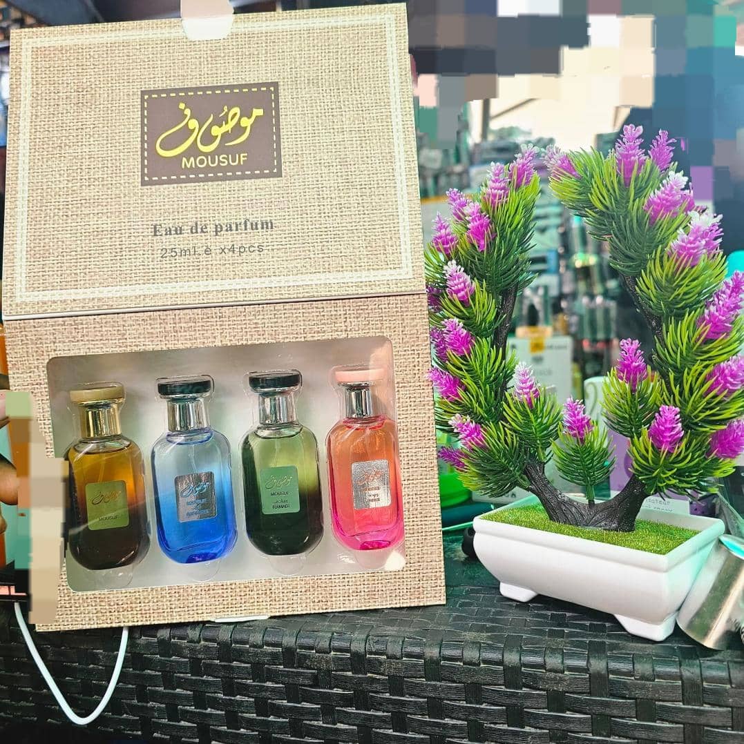 An exquisite 4in1 mini mousuf perfume set in 25ml bottle each. A beautiful fragrance, which is also suitable for everyday life and with which its wearer stands out. An Eau de Parfum quite charming oriental touches whose warmth and softness spread a pleasant harmony. It is a fragrance that can be worn all year round.