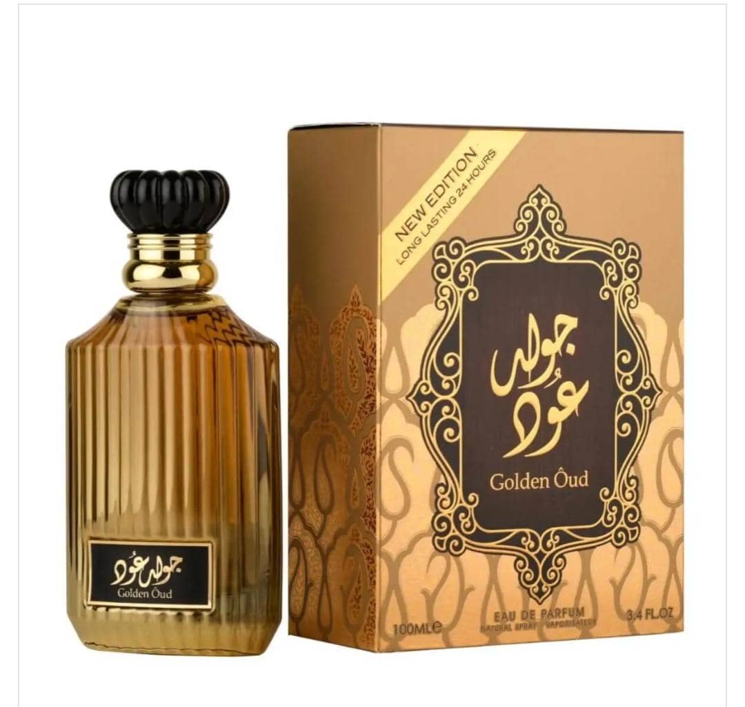 Asdaaf Lattafa Golden Oud Perfume [New edition] opens up with energizing notes while having the base of jasmine, wood, musk and oud.