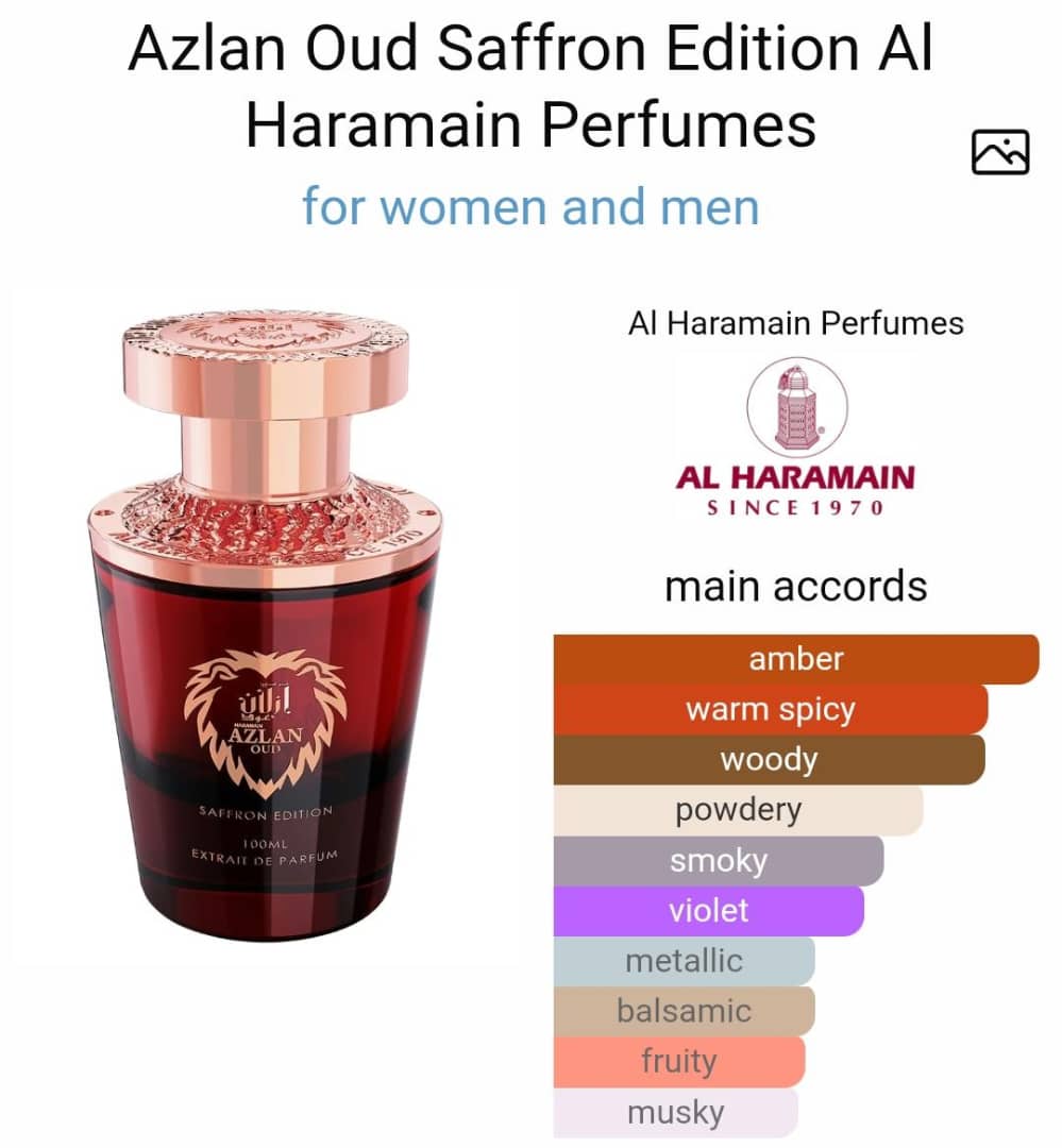 Azlan Oud Saffron Edition Perfume by Al Haramain is a Oriental Woody fragrance for women and men.