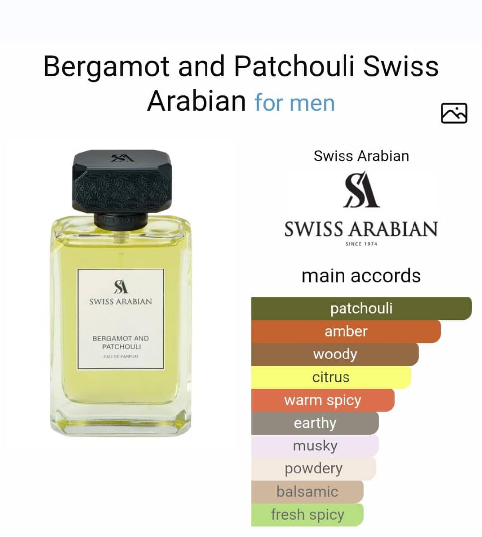 Bergamot and Patchouli Perfume by Swiss Arabian is a Citrus Gourmand fragrance for men.