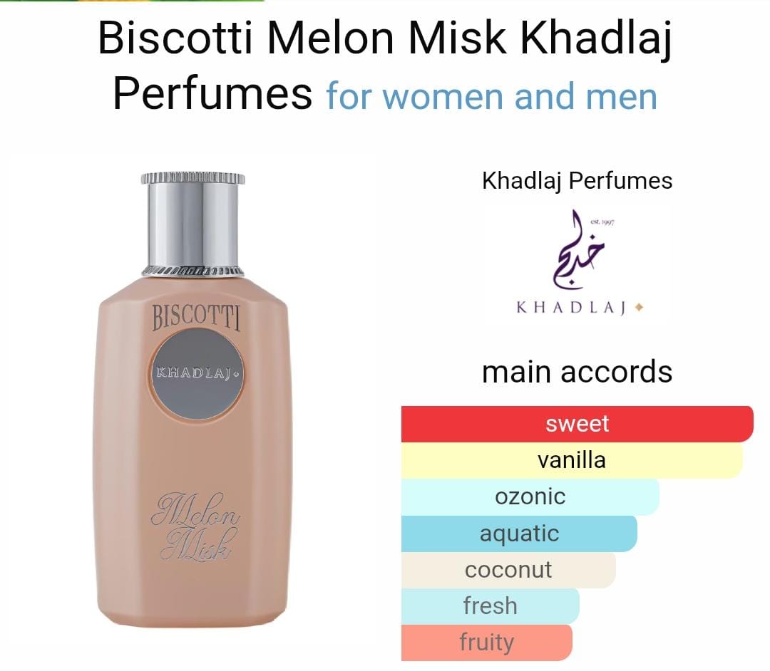 Biscotti Melon Misk Perfume by Khadlaj is a Floral Fruity Gourmand fragrance for women and men.