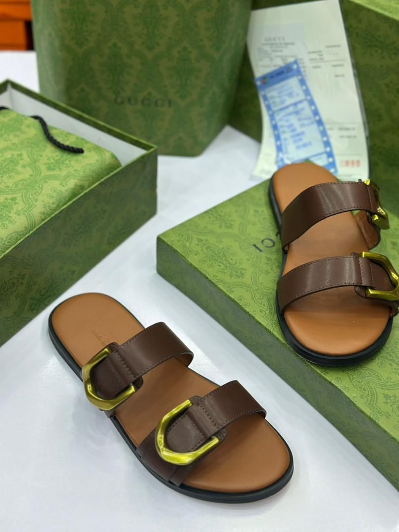 The Buckle Gucci Leather Pam Slipper is the embodiment of understated luxury and timeless Italian craftsmanship. Designed for the fashion-forward individual who appreciates comfort with a bold touch, this slipper features a sleek leather construction that radiates elegance with every step. The signature Gucci flair comes through in the prominent metallic buckle detail—an iconic emblem of sophistication—set against a smooth, high-quality leather strap.