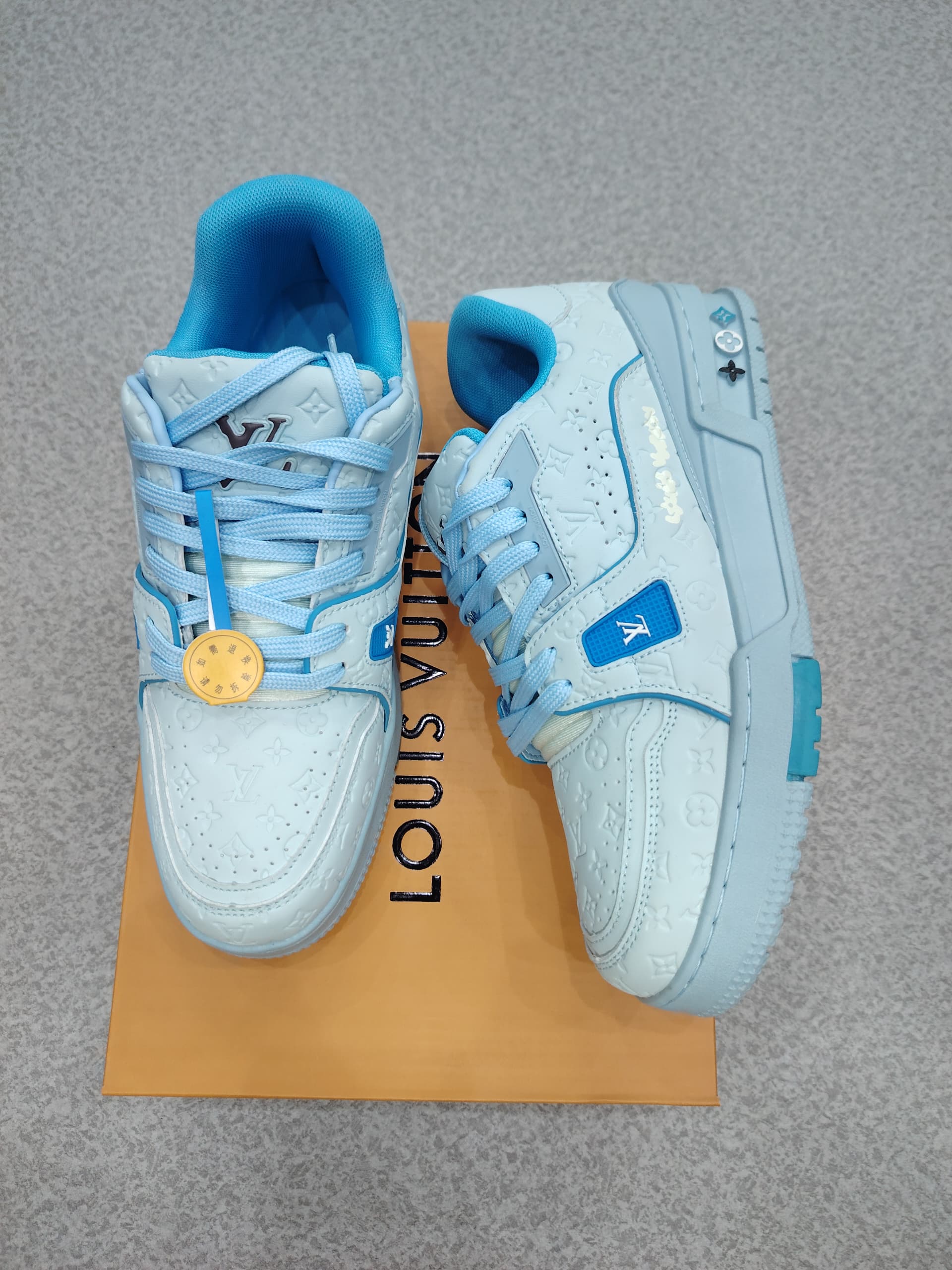 The sneaker features premium materials—smooth calf leather and suede overlays—complemented by monogram flourishes and custom motifs exclusive to the collaboration. A chunky, retro-inspired silhouette nods to skate culture, while the LV and Golf le Fleur* logos co-exist in a seamless dialogue of fashion and personality. With a cushioned sole for all-day comfort and a look that demands attention, this sneaker is more than footwear—it’s a wearable work of art.
