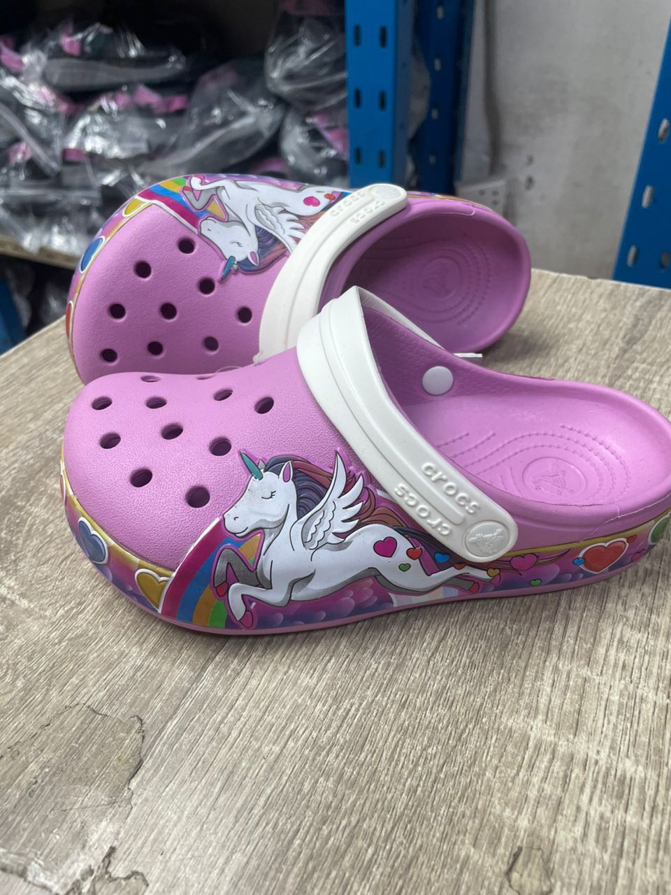 Finished with a pivoting heel strap for a secure fit, the Classic Unicorn Crocs blend charm, durability, and comfort in one magical pair.