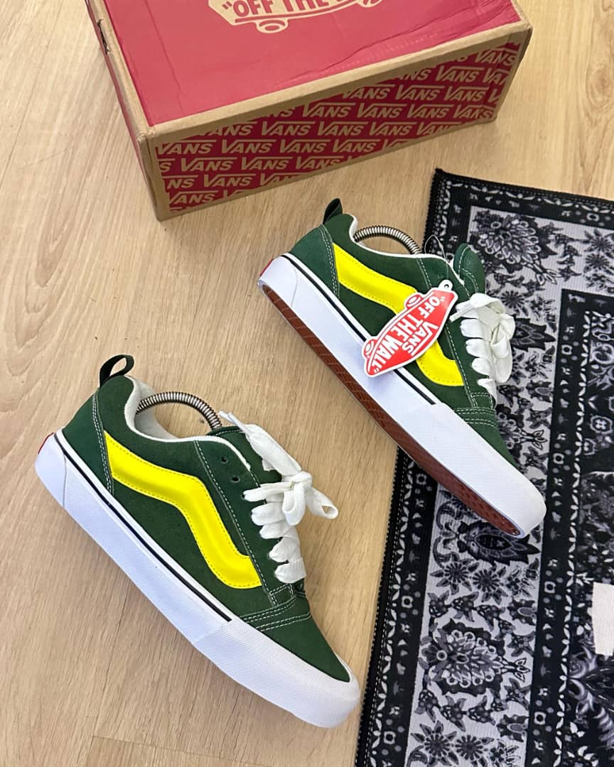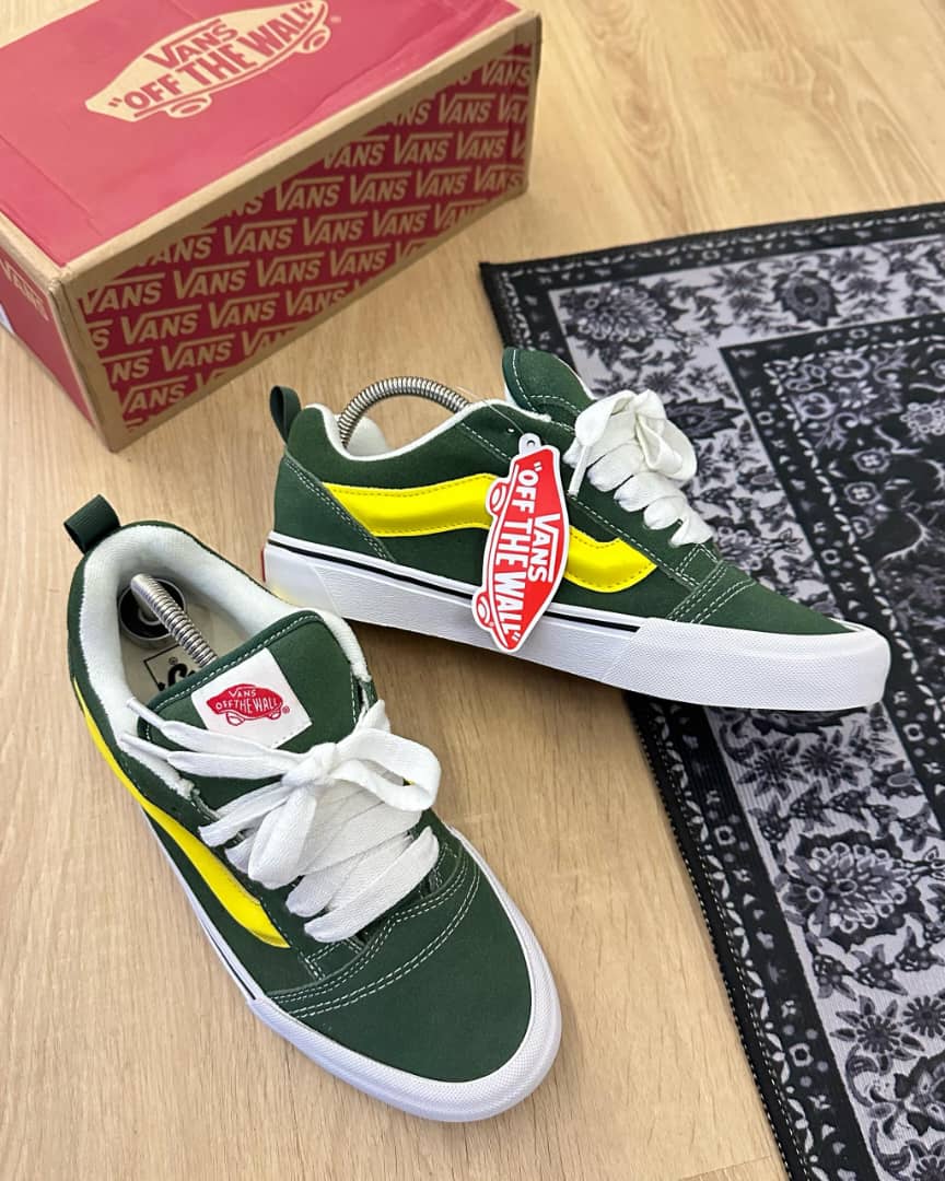 Step into retro flair with a modern twist in the Classic Vans Knu Skool Sneaker. Inspired by Vansβ iconic skate heritage, this bold silhouette features an exaggerated padded tongue and collar for ultimate comfort and a chunky, oversized look. The signature suede upper is paired with the timeless sidestripe detail, bringing a nostalgic nod to ’90s street style. Set on a durable rubber waffle outsole, the Knu Skool offers reliable traction and a standout edge. Whether you’re hitting the skatepark or elevating your casual look, this sneaker delivers statement-making style with all-day wearability.