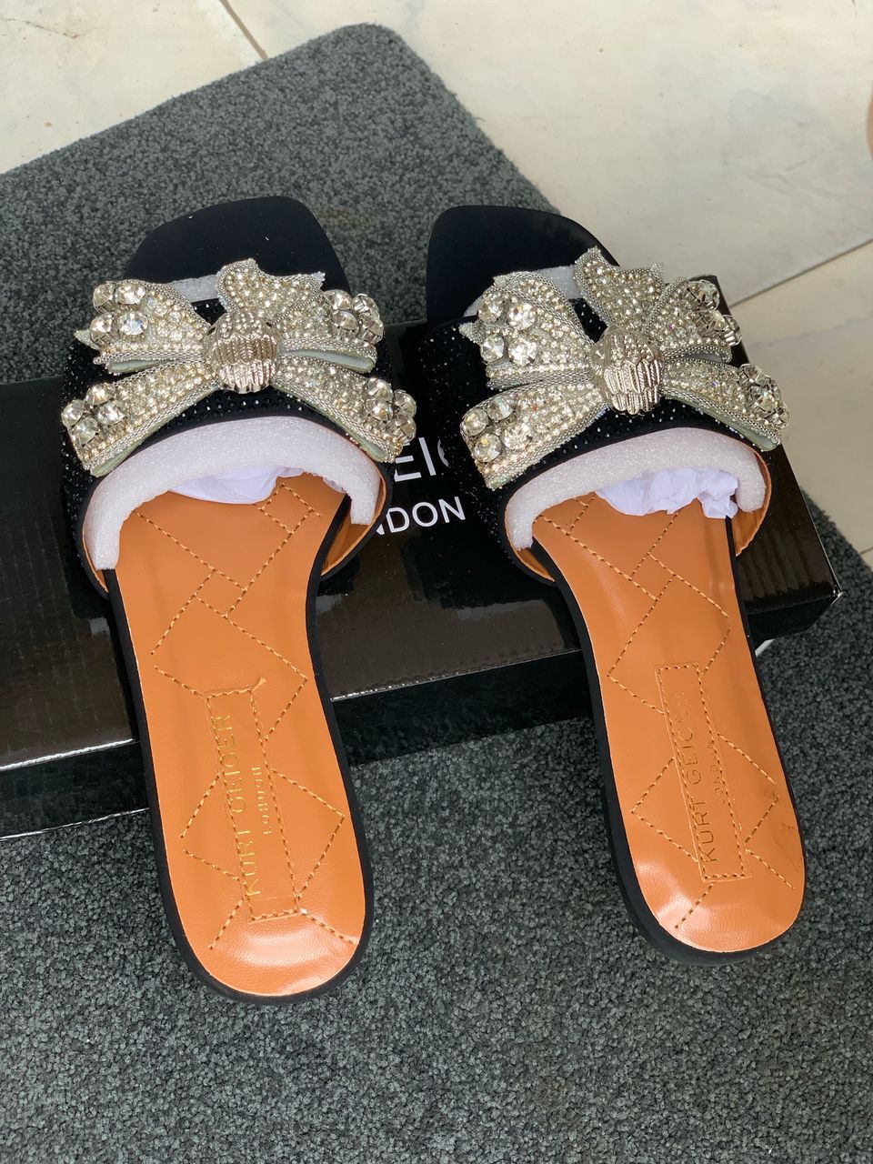 Step into effortless elegance with the Classy Kurt Geiger Flat Slipper — where refined comfort meets timeless sophistication. Designed with a sleek, minimalist silhouette, this flat slipper features a soft yet durable upper adorned with Kurt Geiger’s signature attention to detail. The subtly cushioned footbed ensures all-day comfort, while the chic, slip-on design makes it perfect for both casual days and polished evenings. Whether paired with tailored trousers or a flowing maxi dress, this slipper brings a touch of class to every stride. A true staple for the fashion-forward woman who values understated luxury.