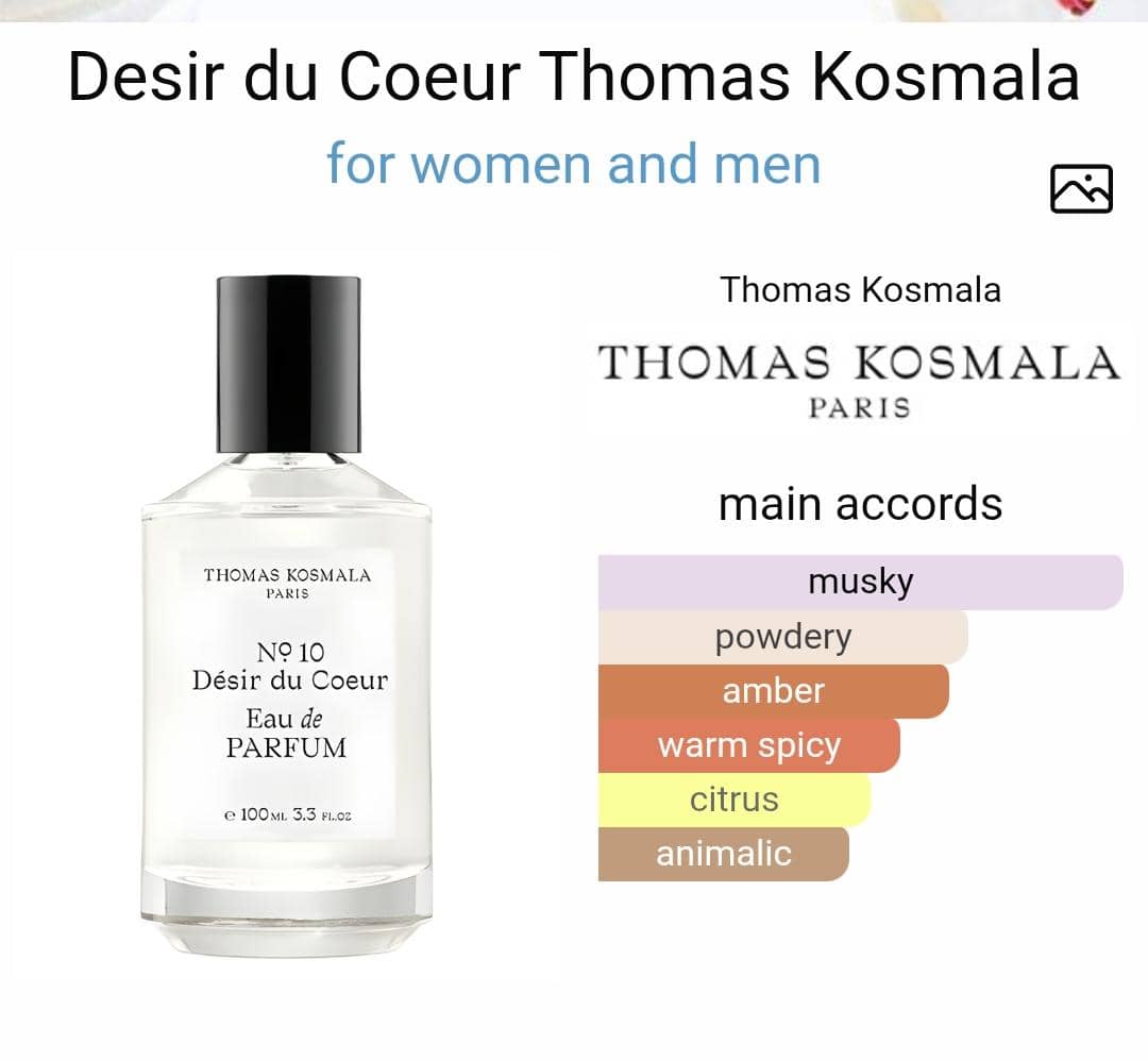 Desir du Coeur Perfume by Thomas Kosmala is a Oriental Woody fragrance for women and men. Top note is Lemon Zest; middle note is Aromatic Spices; base notes are Musk and Amber