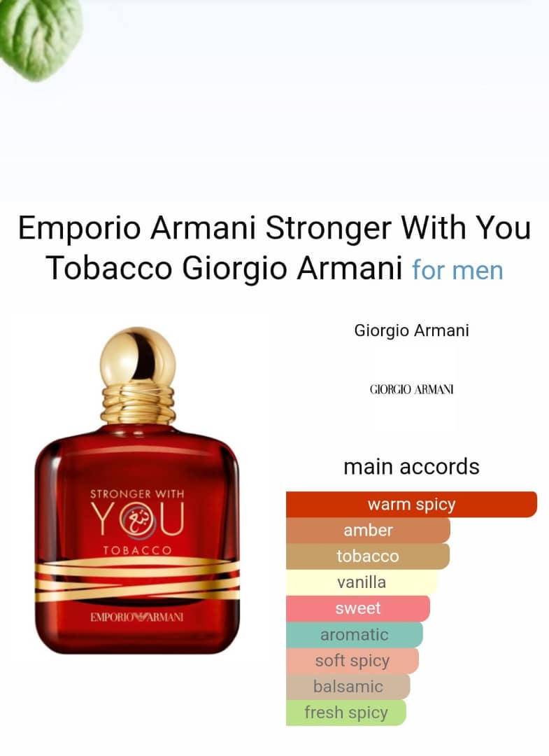 Emporio Armani Stronger With You Tobacco Perfume by Giorgio Armani is a Oriental Spicy fragrance for Men