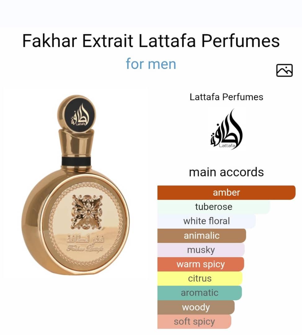 Fakhar Extrait by Lattafa Perfumes is a fragrance for men. Top notes are Cardamom, Grapefruit and Pink Pepper; middle notes are Tuberose, Solar Notes and Artemisia; base notes are Amber, Cashmeran, Leather and Labdanum.