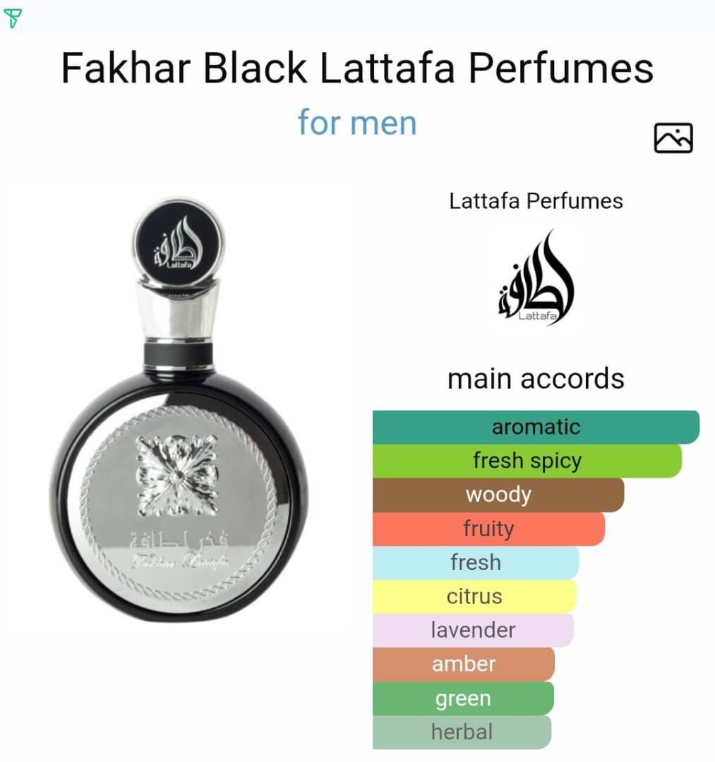 Fakhar Black by Lattafa Perfumes is a Oriental fragrance for men. Top notes are Apple, Bergamot and Ginger; middle notes are Lavender, Sage, Juniper Berries and Geranium; base notes are Tonka Bean, Cedar, Amberwood and Vetiver.