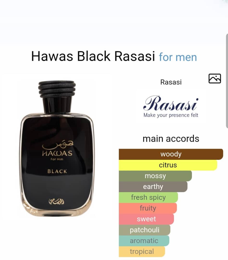 Hawas Black Perfume by Rasasi is a fragrance for men.