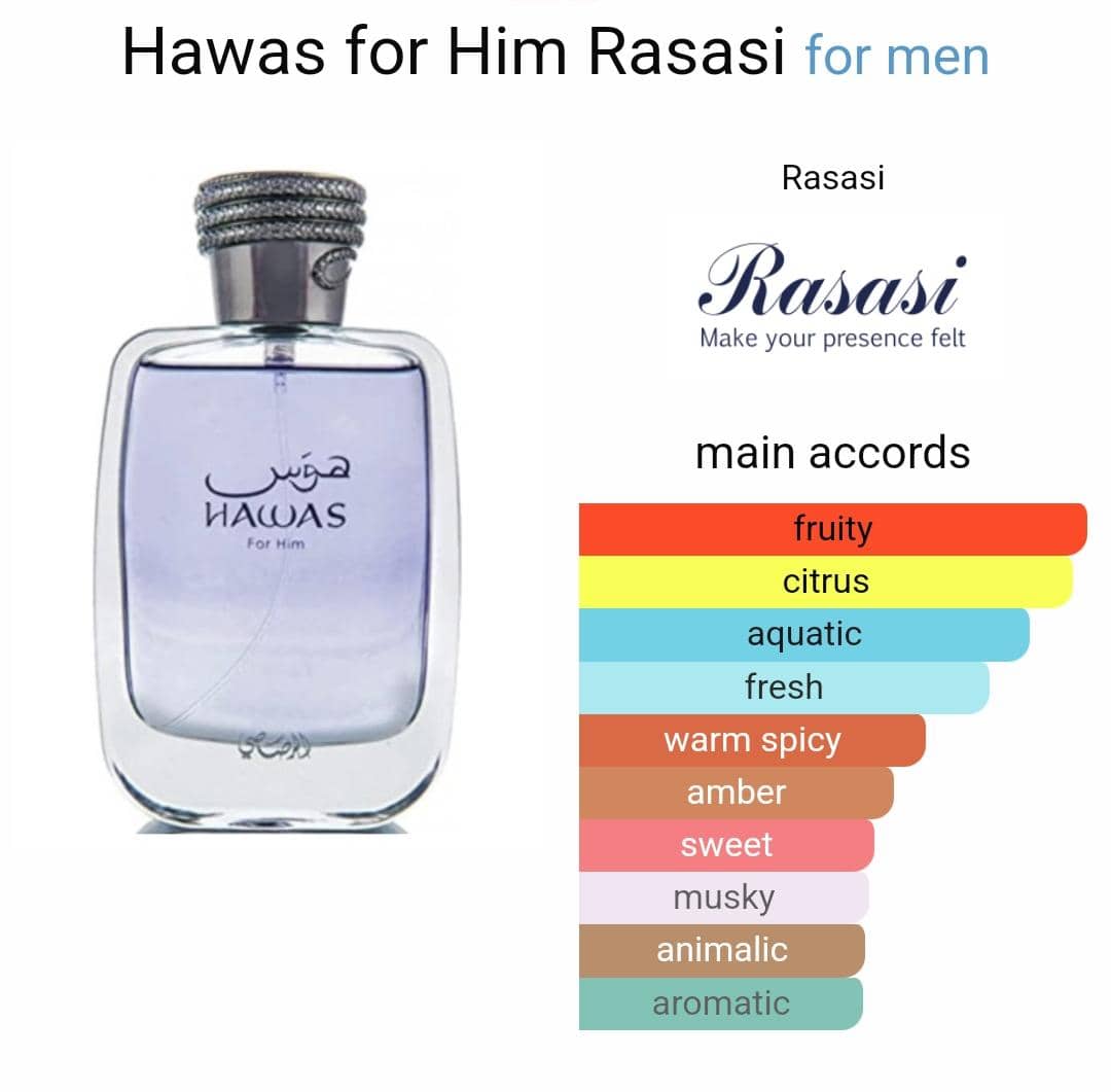 Hawas for Him Perfume by Rasasi is a Aromatic Aquatic fragrance for men.