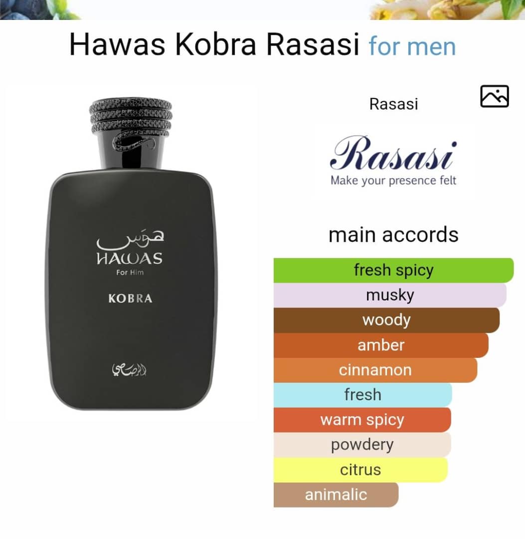 Hawas Kobra Perfume by Rasasi is a Oriental Woody fragrance for men.