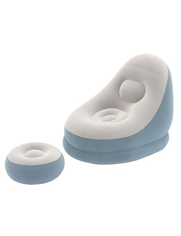 The Inflated Deluxe Sofa and Ottoman Foot Stool is the perfect blend of comfort, style, and convenience. Designed for modern relaxation, this luxurious inflatable sofa features an ergonomic shape that contours to your body, providing ultimate support and coziness. Made from high-quality, durable PVC with a soft, flocked surface, it offers a plush feel while remaining sturdy and puncture-resistant.