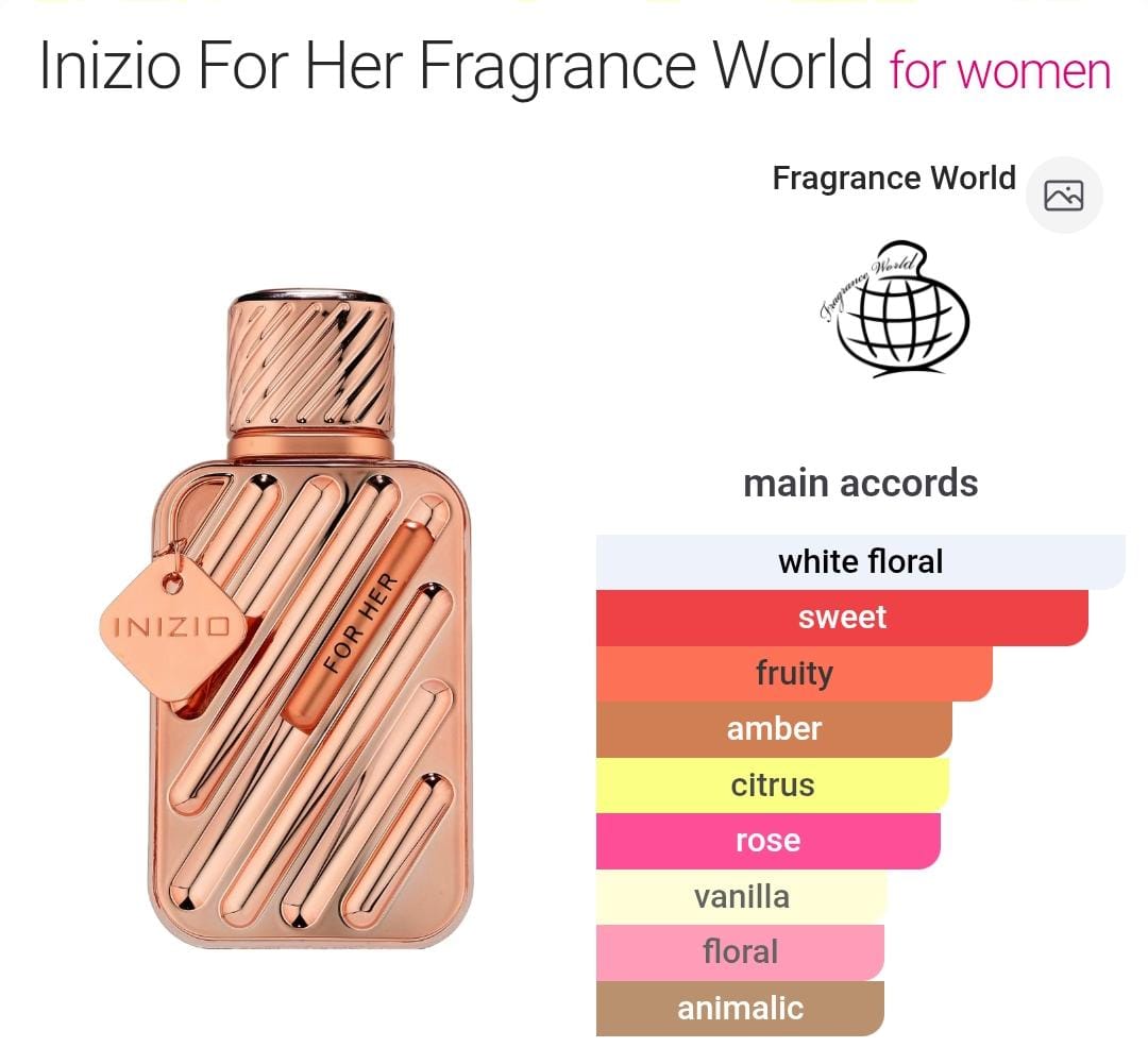 Inizio For Her Perfume by Fragrance World is a Floral Fruity Gourmand fragrance for women.