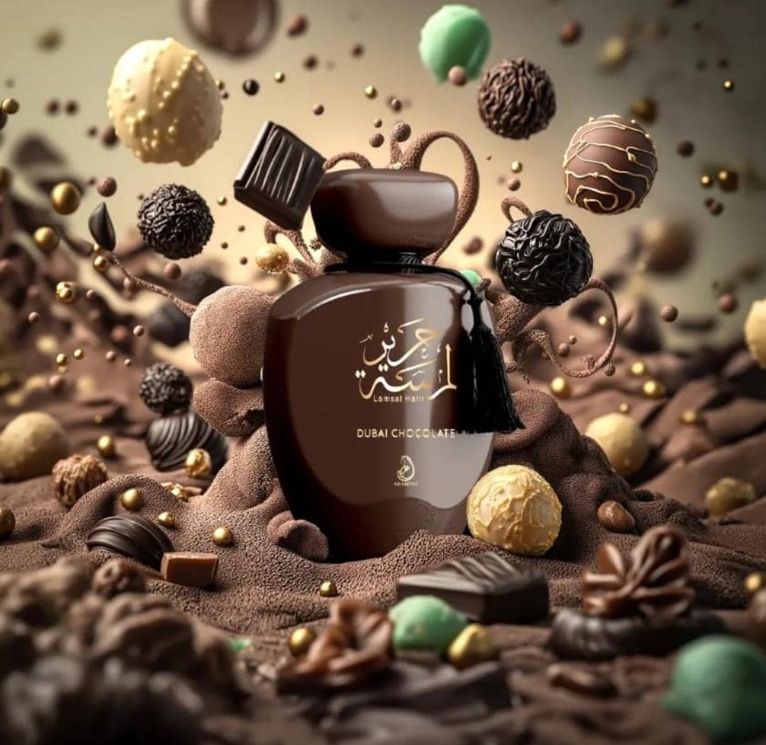 Lamsat Harir – Dubai Chocolate Perfume is a luscious, very edible gourmand fragrance that makes you smell yummy. The fragrance starts on fresh lemon and succulent juicy- fruity notes. The heart blooms with complex contrasts as dollops of creamy sweetness from marshmallow and coconut jostles with tarty strawberry, and fresh and sweet white floral facets of orange blossom. The dry-down further buttresses the edible essence of the fragrance with soft cream, sugar and vanilla while raspberry beautifully offsets the sweetness.