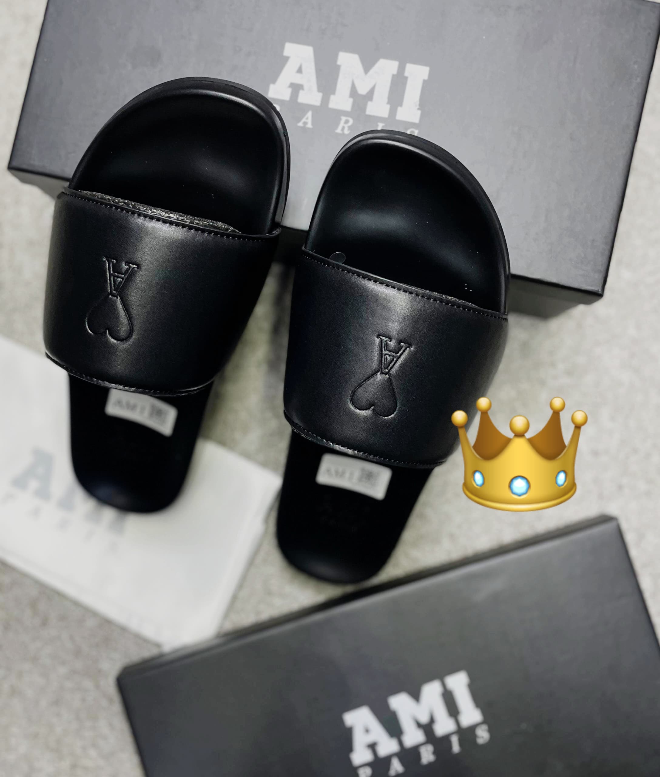 The Luxury Ami Paris Slide is the epitome of effortless sophistication, blending contemporary style with supreme comfort. Designed for those who appreciate understated luxury, this slide features a sleek, minimalist silhouette crafted from premium materials. The wide, cushioned strap showcases the signature Ami de Coeur emblem, a mark of Parisian elegance. A contoured footbed ensures all-day comfort, while the durable rubber sole provides excellent grip and stability. Whether paired with casual summer wear or elevated loungewear, the Ami Paris Slide is a must-have for those who value both fashion and function.