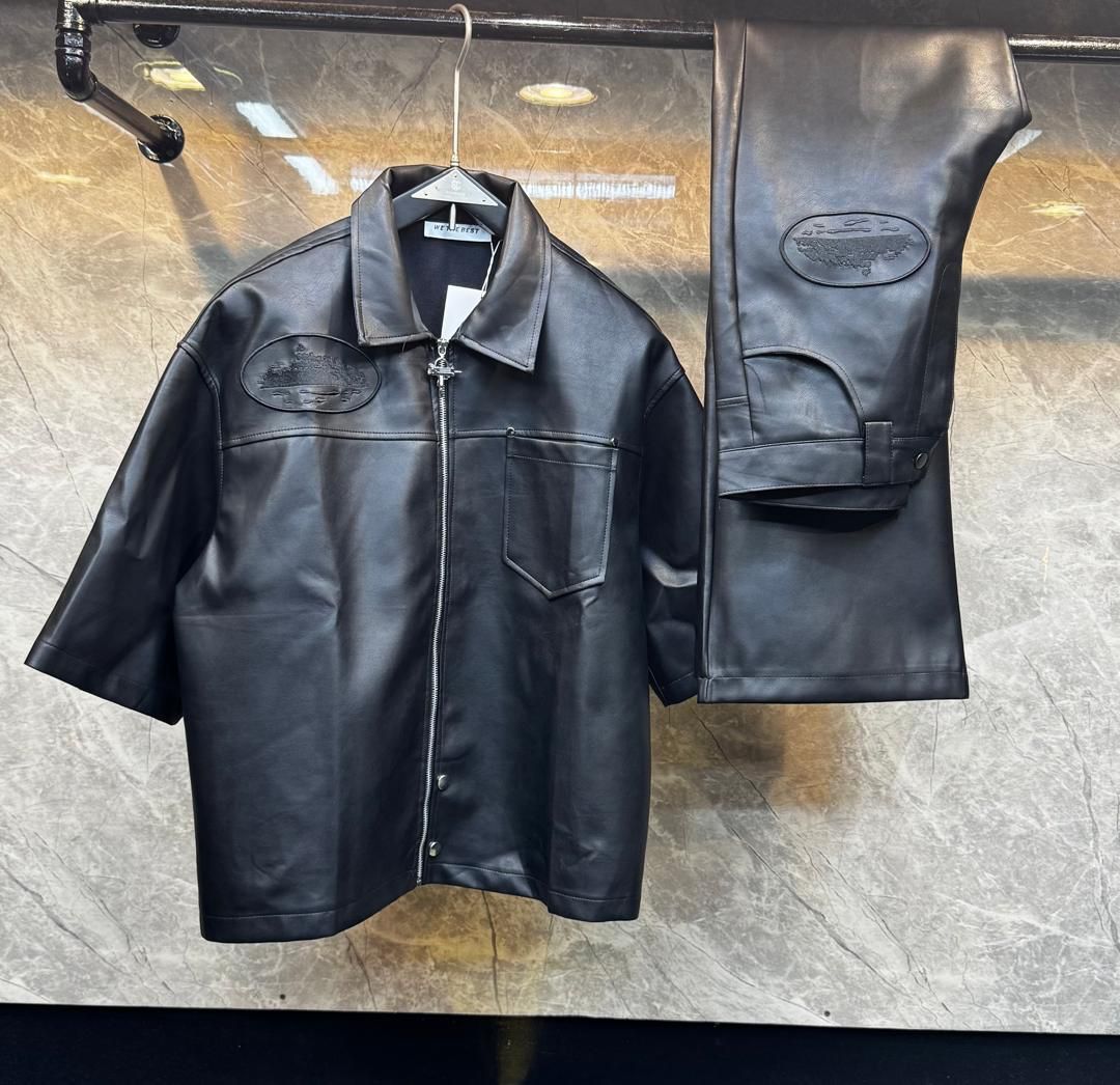 Make a bold fashion statement with the Luxury Leather Pant and Jacket Set, a perfect fusion of elegance, edge, and sophistication. Expertly tailored from premium quality leather, this set offers a sleek silhouette and timeless appeal that elevates any look. The jacket features a smooth zip-up front, structured shoulders, and fine stitching details for a refined finish, while the matching pants provide a comfortable yet fitted design that complements the upper perfectly.