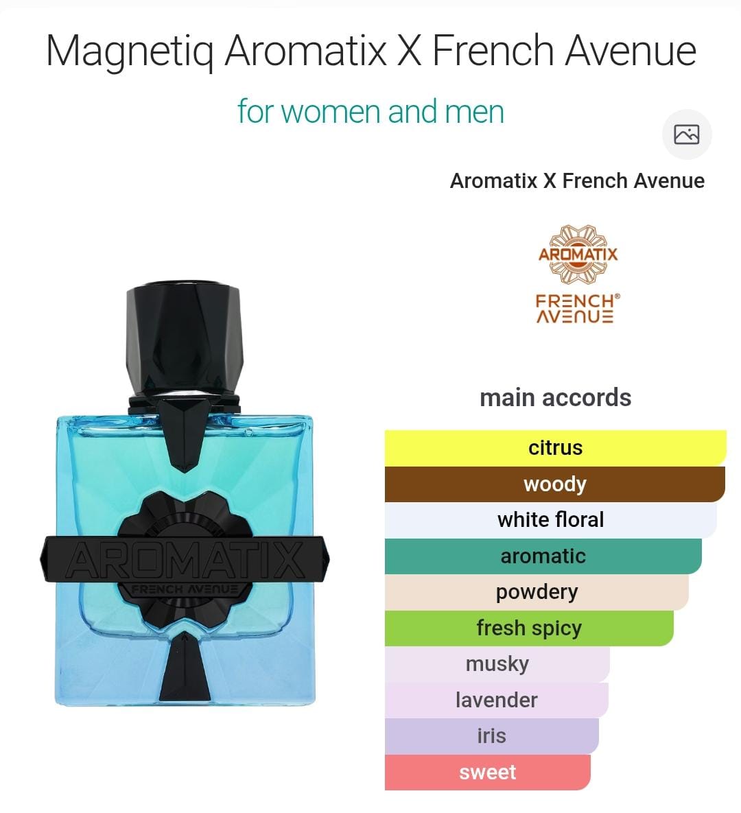 Magnetiq by Aromatix X French Avenue Perfume is a Woody Aromatic fragrance for women and men.