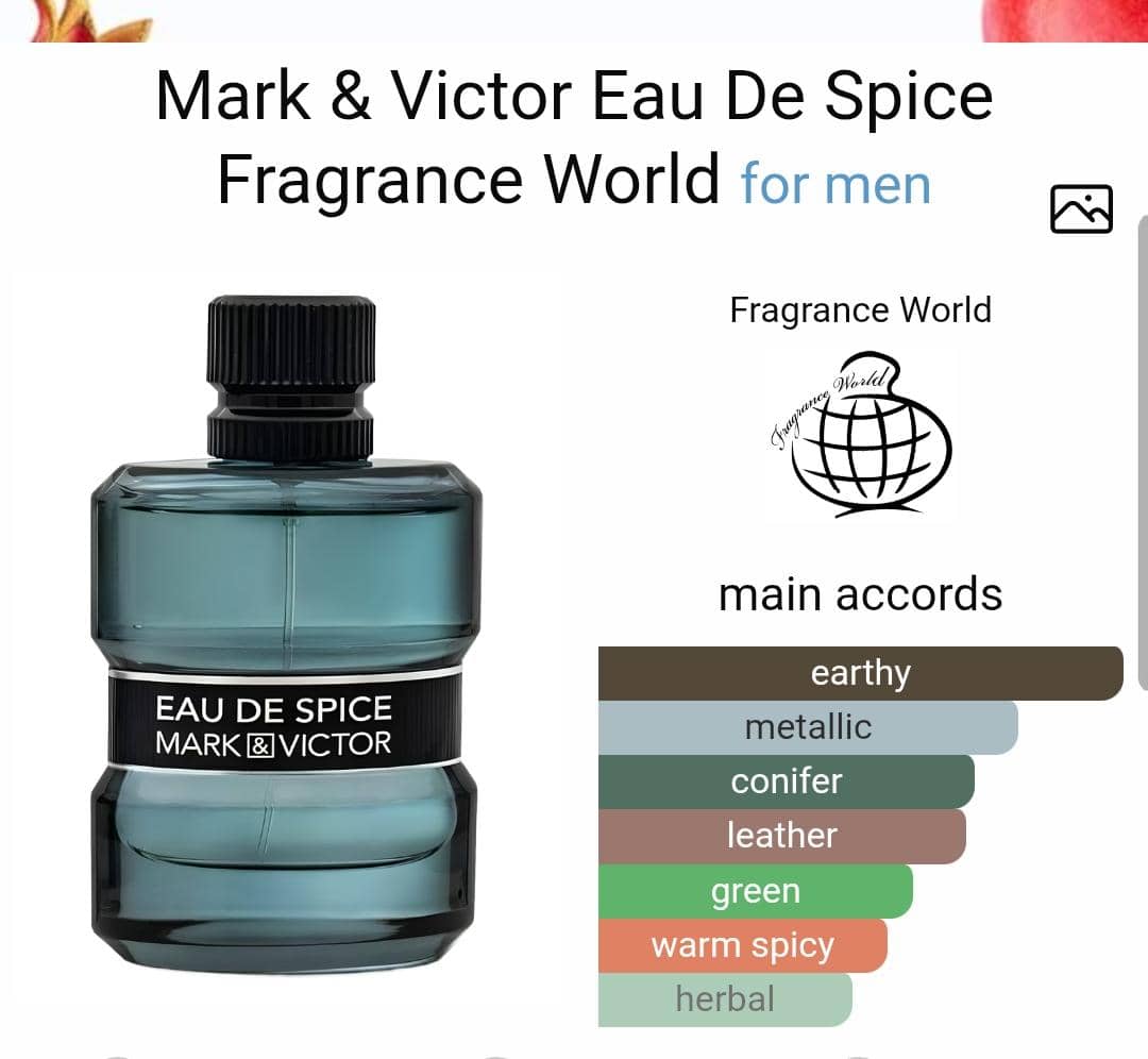 Mark & Victor Eau De Spice Perfume by Fragrance World is a Woody Spicy fragrance for men.