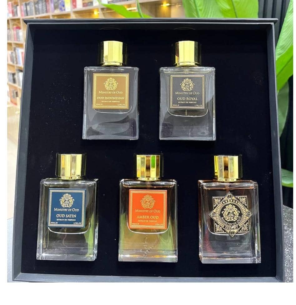 Ministry of Oud Luxury Perfume Collection 5 Piece Gift Set contains 50ml EDP Each of: