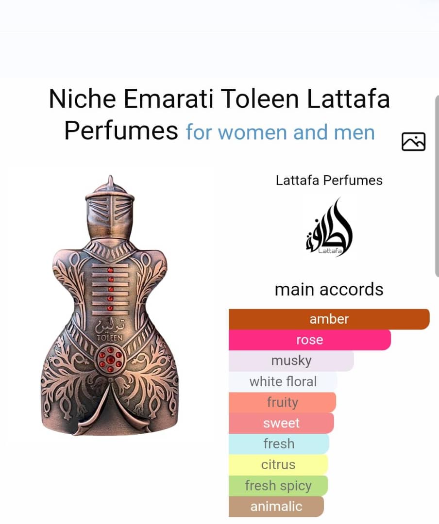 Niche Emarati Toleen by Lattafa Perfumes is a Oriental Spicy fragrance for women and men.
