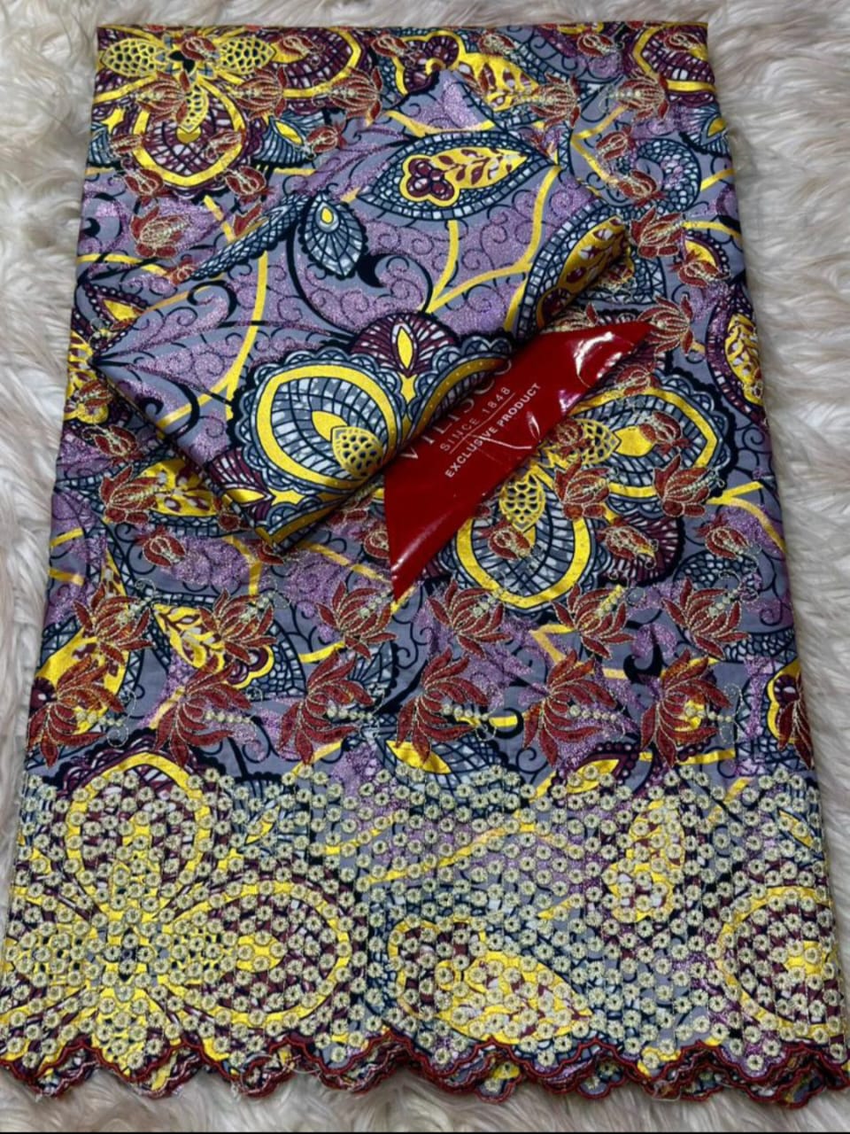 Elevate your fashion creations with this Premium Quality Vilisco Embroidery Fabric, a perfect blend of elegance, craftsmanship, and cultural richness. Designed for lovers of high-end African fashion, this fabric features vibrant, detailed prints enhanced with finely crafted embroidery that adds depth, texture, and a luxurious finish.