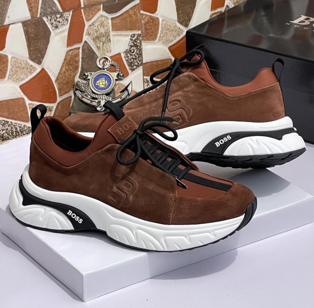 Step into refined street style with the Premium Suede Bold Sneakers, a perfect fusion of luxury craftsmanship and modern edge. These sneakers feature a rich brown suede upper paired with a contrasting chunky white sole, offering both comfort and confidence in every stride.