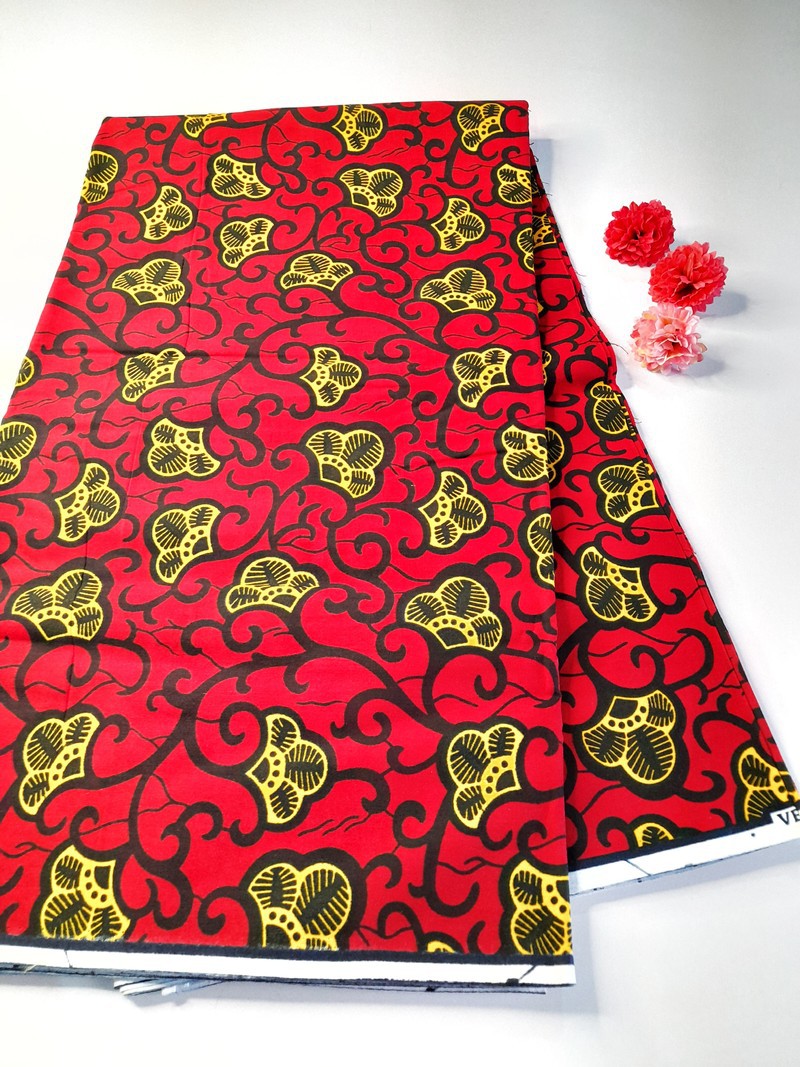 Quality Red Water Leave Ankara Material: 100% cotton, This Ankara Fabric preserves it’s initial color and texture even after numerous wash. Suitable in all kinds of beautiful styles for occasions and casual wares. You can also get this as a gift for relatives, friends, colleagues and bosses also suitable for ASO-EBI. Beautiful traditional African fabric, part of the famous. High quality 100% cotton. Suitable to be used for wrapper.