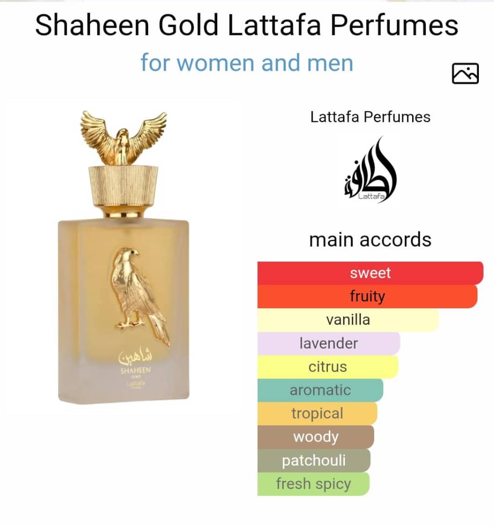 Shaheen Gold by Lattafa for women and men.