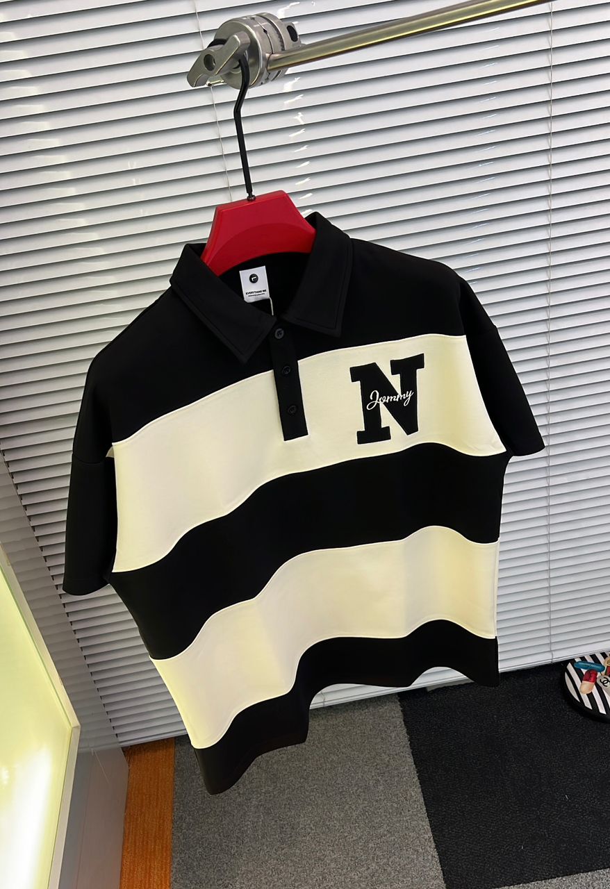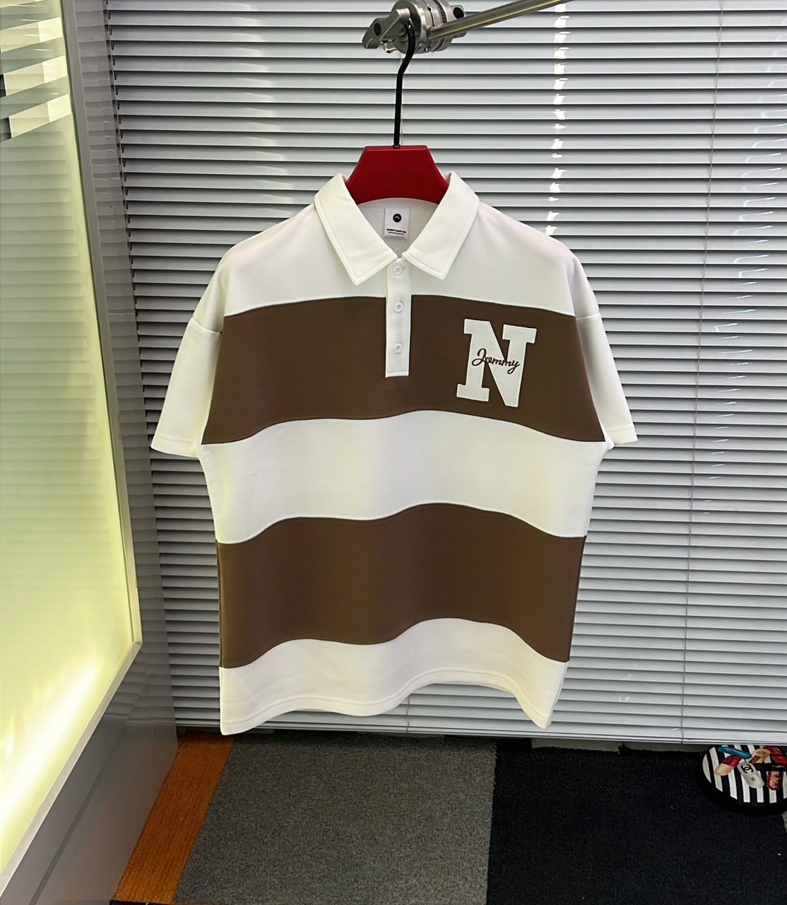 Featuring a modern fitted silhouette, ribbed collar, and buttoned placket, the polo is enhanced with vibrant, well-defined stripes that add a refined pop of color to a timeless design. Ideal for casual outings, workwear, or weekend wear, it pairs effortlessly with jeans, chinos, or tailored shorts.