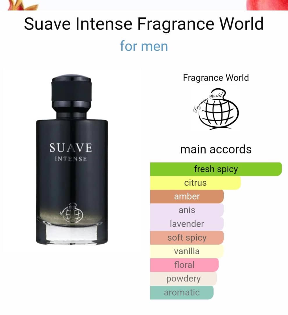 Suave Perfume by Fragrance World for Men – a sophisticated scent that embodies confidence, charm, and timeless masculinity. This captivating fragrance opens with fresh, invigorating notes of citrus and spice, leading into a heart of aromatic herbs and subtle floral undertones. The base settles into a warm blend of amber, musk, and woody accords, leaving a lasting impression that is both refined and magnetic. Perfect for the modern gentleman, Suave is versatile enough for daily wear yet elegant enough for special occasions, ensuring you leave a trail of understated luxury wherever you go.