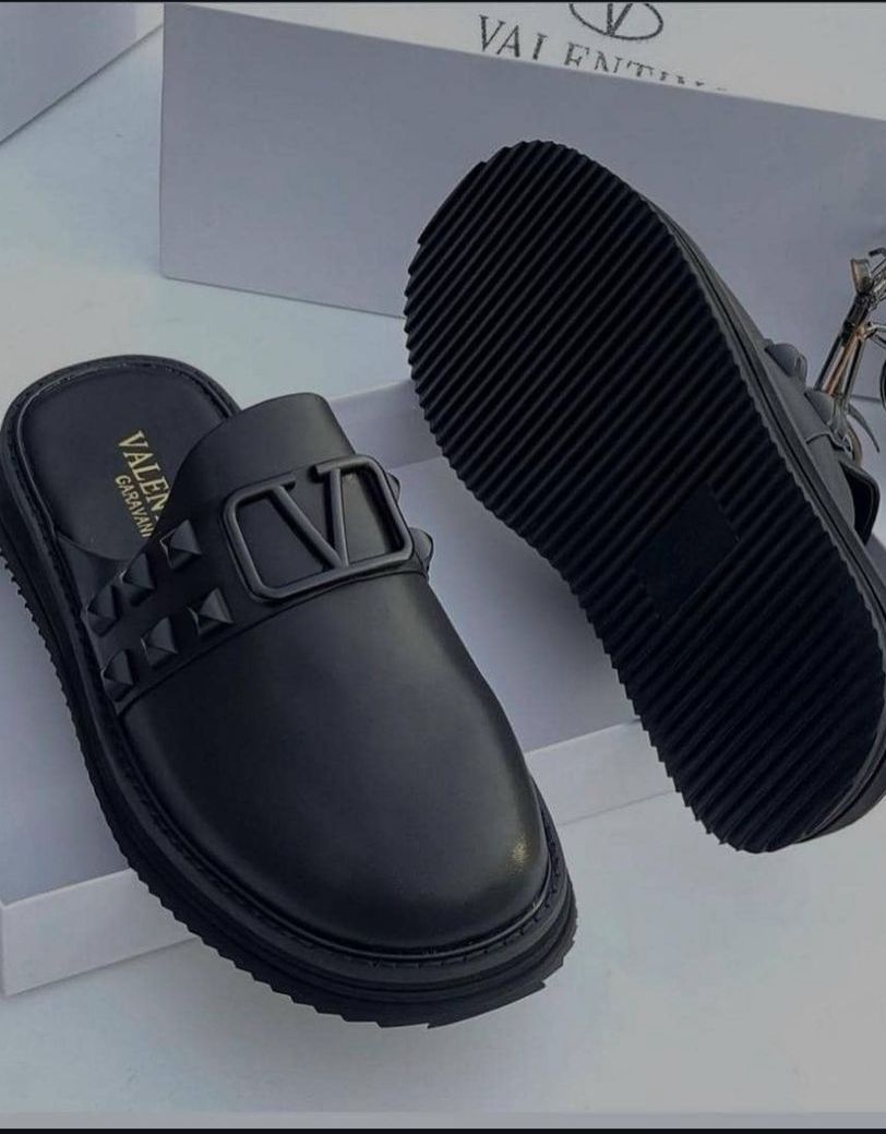 The Valentino Studded Half Shoe is a striking blend of elegance and edginess, perfect for the modern fashionista. Crafted from luxurious leather or suede, this sleek slip-on shoe features Valentino’s signature Rockstud embellishments, adding a touch of bold sophistication. The half-shoe design, with its open back and pointed toe, creates a chic, effortless look ideal for both casual and semi-formal outfits. The studded detailing around the trim gives a distinctive flair, while the cushioned insole ensures comfort. This versatile piece seamlessly transitions from day to night, offering timeless style with a rebellious edge.