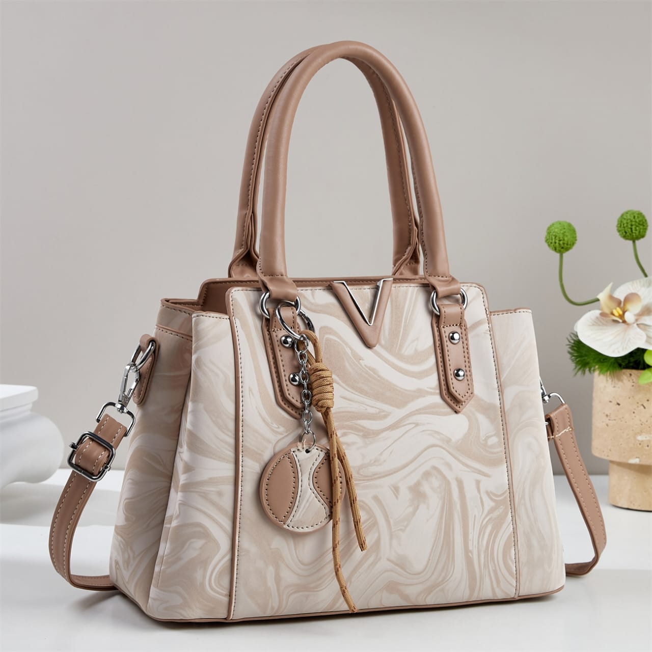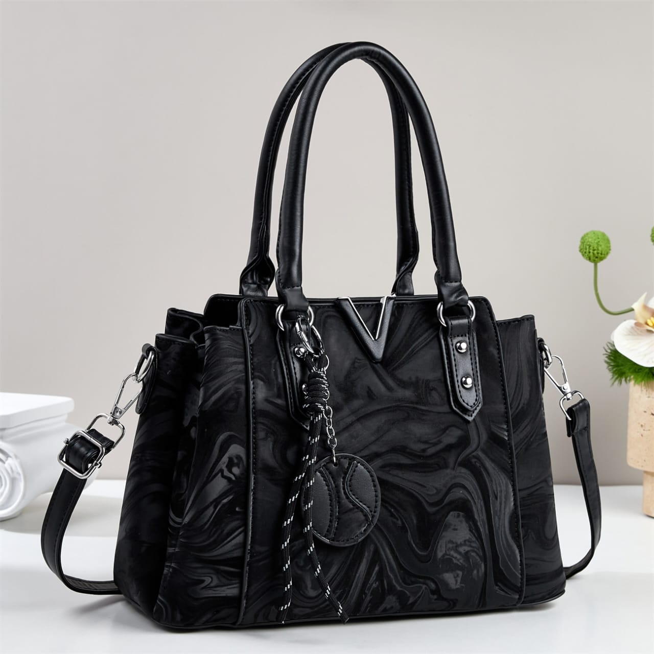 This striped handbag is designed for the stylish woman who loves standing out with confidence.