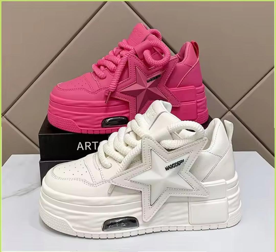 Step into style with the Women Platform Star Sneaker, a perfect blend of comfort, trendiness, and individuality. These sneakers feature a bold platform sole that elevates your look—literally and figuratively—while ensuring all-day support and cushioning. The upper design boasts sleek, contemporary lines adorned with eye-catching star details, adding a playful yet sophisticated flair.
