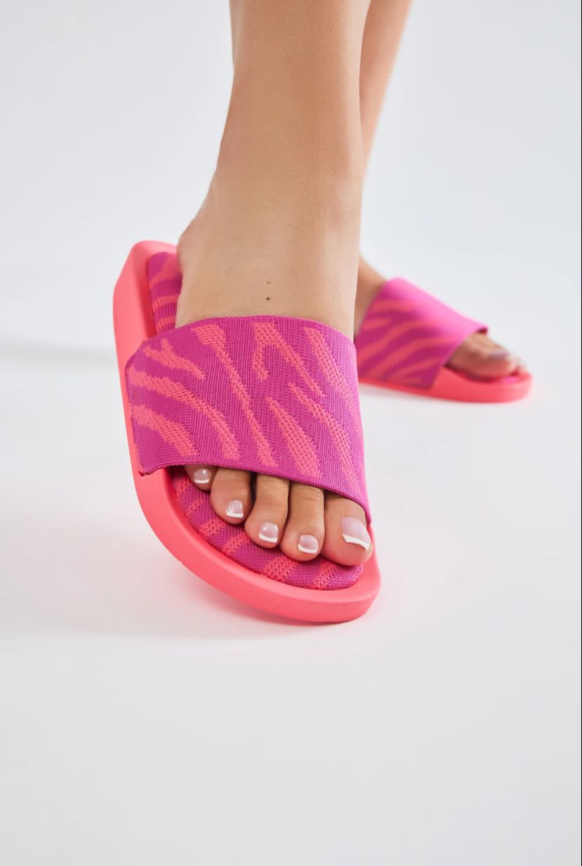 Step into bold comfort with the Zebra Print Terry Slide, a stylish blend of relaxation and statement design. Featuring a soft terry fabric upper with striking zebra print patterns, this slide brings a touch of playful sophistication to your casual looks. The cushioned sole ensures all-day comfort, while the open-toe design keeps your feet cool and breathable. Perfect for lounging, errands, or adding flair to everyday outfits, this slide pairs effortlessly with both laid-back and trendy ensembles.