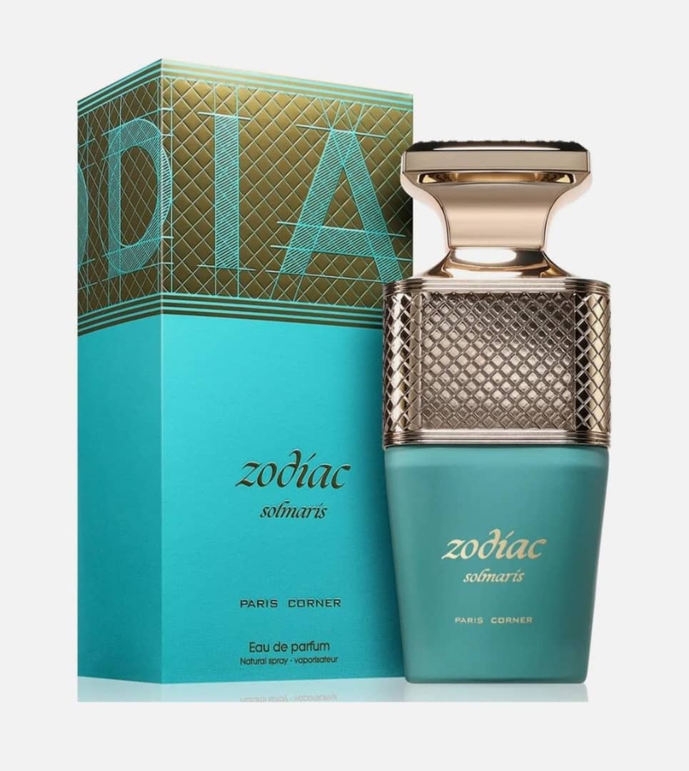 Zodiac Solmaris by Paris Corner is a unisex fragrance that evokes the spirit of the sea. It opens with ginger and sea salt, followed by aquatic and algae notes at the heart. The base is composed of vetiver, cedarwood, and oakmoss, providing an earthy and green finish.